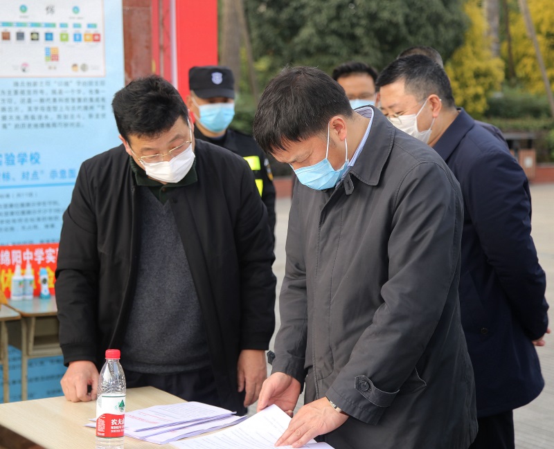 市委宣传部张学民部长一行视察绵阳中学实验学校防疫工作