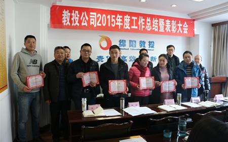 1月29日下午,教投公司在公司大会议室组织召开2015年度工作总结暨表彰大会。会议由总经理廖昭宏主持,公司领导班子成员、中层以上干部、各部门以及子公司员工共40余人参加了此次会议。党总支书记、副总经理田仕富首先宣读了《关于2015年度先进集体和个人的表彰决定》:办公室、财务部荣获“集体贡献奖”;杨晓兰、窦天粒、李俊桥荣获“经营管理工作先进个人”;胥松荣获“投融资工作先进个人”;王程荣获“党群工作先...